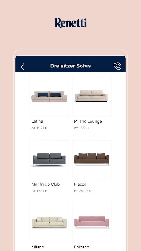 Erlebe mit der RENETTI AR-APP Dein Wunschsofa zuhause in Deinem Wohnzimmer