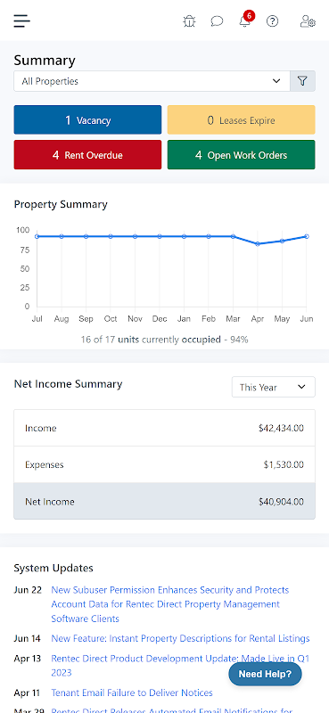 Kunden von Rentec Direct können auf ihren Mobilgeräten bequem und mühelos auf wichtige Informationen zu ihren Immobilien, Mietern und Wartungsanfragen zugreifen und so ihre Immobilienverwaltungsgeschäfte von jedem Ort aus effektiv verwalten.
