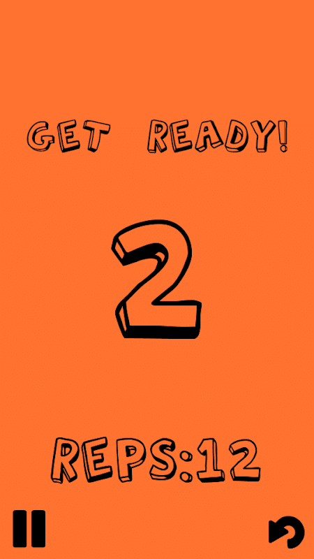 You can choose how many reps you want to do, when that amount of reps is done the rest timer starts. This is to show you how long you have rested. At any time in the rest section you can press the play button in the bottom left corner to get back into a new set. If you are done, or just want to start over, you can simply press the back button on all screen in the bottom right corner.
