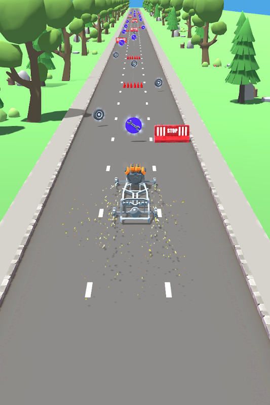 Repariere dein Auto auf der Straße und weiche den Hindernissen aus.