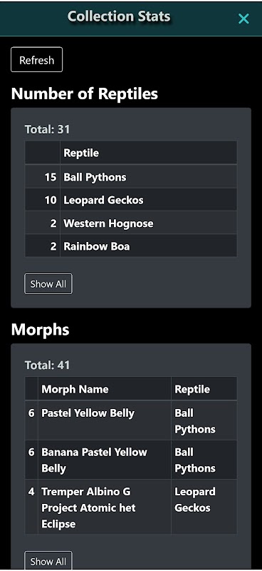 RepTool ist ein All-in-One-Tool, das speziell für Reptilienzüchter und -halter entwickelt wurde. Mit Tools zum Verwalten Ihrer Reptilien, egal ob 1 oder 10.000+.