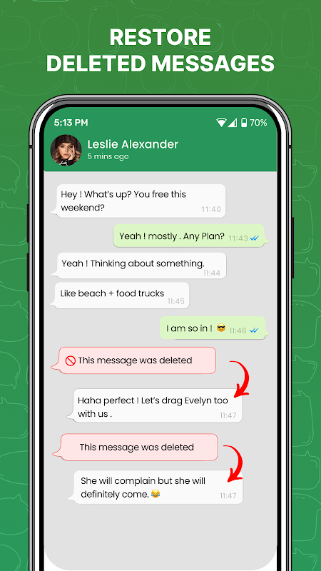 Stellen Sie Nachrichten, die versehentlich vom Absender gelöscht oder entfernt wurden, einfach wieder her. Schützen Sie alle Ihre wichtigen Chats. Verpassen Sie nie wieder eine wichtige Unterhaltung.