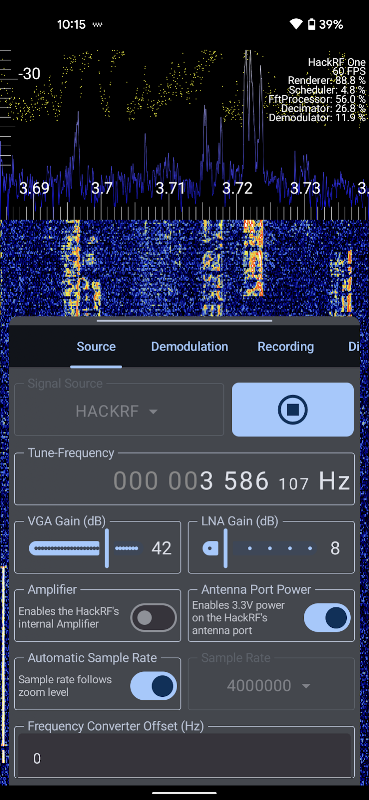 Analysiere HF-Signale auf Android mit HackRF, RTL-SDR, Airspy (HF+) und HydraSDR.