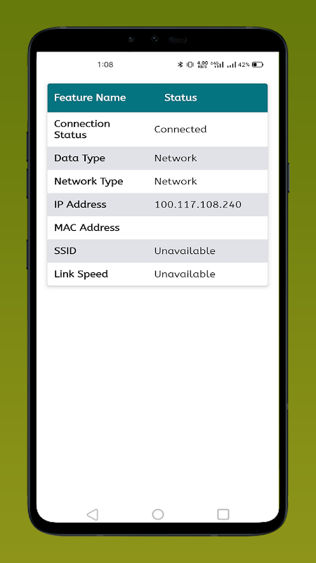 Radio Frequency informiert über das Netzwerk und die Konnektivität aller Details in der App