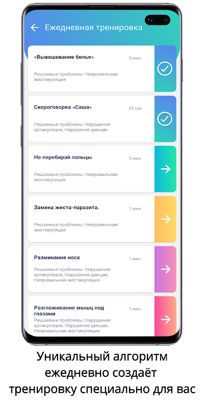 Ein einzigartiger Algorithmus zur Auswahl von Sprachübungen, die Ihre Rede verbessern.