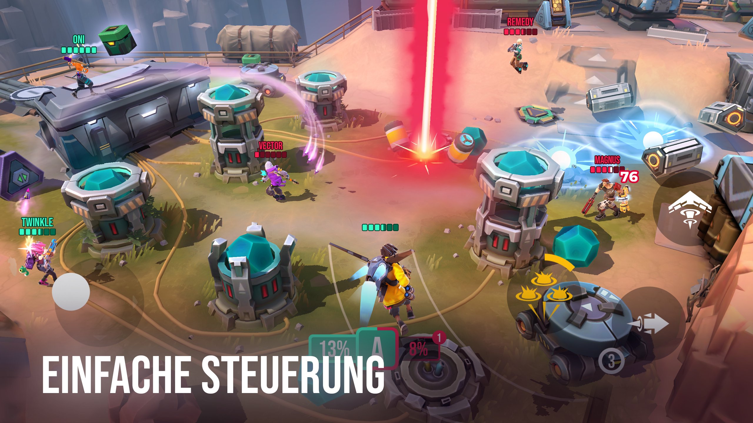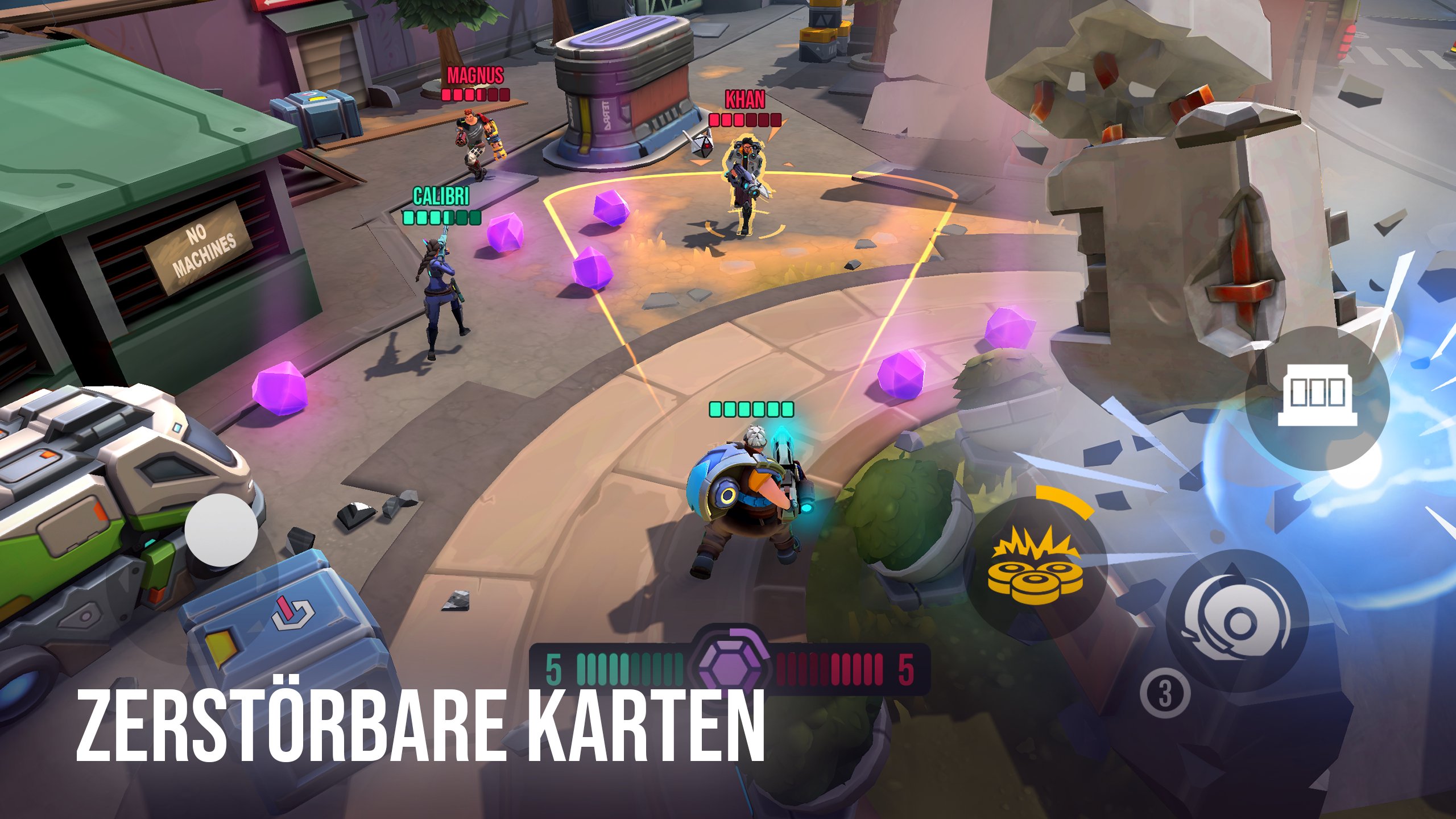 Ricochet Squad ist ein rasantes PvP 3v3-Ballerspiel in einem lebendigen, futuristischen Universum, in dem Chaos auf Kontrolle trifft. Schieß in explosiven Echtzeitkämpfen gegen andere Spieler und wähle aus einer Vielzahl einzigartiger Helden mit besonderen Fähigkeiten und mutigen Spielstilen. Dank einfacher Steuerung und Auto-Zielen beim Schießen ist der Einstieg leicht – unabhängig von deinem Können. Fans von Aktion- und Ballerspielen kommen hier voll auf ihre Kosten.