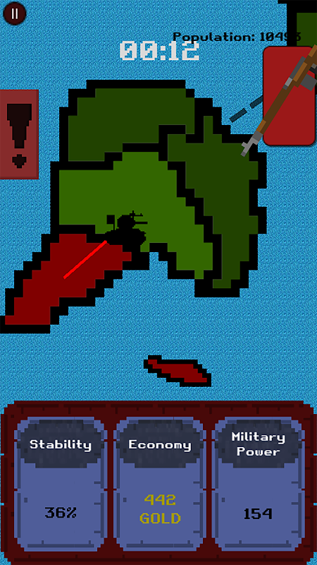 Wird die Republik Rindnar die Geschichte schreiben können? Ziel des Spiels ist es, das gespaltene Rias-Imperium zu schwächen und zum Rückzug vom Festland zu zwingen. Die Republik Rindnar, deren Ziel es ist, eine neue Weltordnung zu schaffen, muss gestärkt werden. Halten Sie Wirtschaft und Kriminalität unter Kontrolle, während Sie Armeen führen und an den Fronten kämpfen. Achten Sie auf die Zufriedenheit der Bevölkerung, um Steuererhöhungen zu erzielen. Sie sind auf diesem Weg nicht allein. Zu Spielbeginn können Sie drei Politiker Ihrer Wahl zur Unterstützung mitnehmen. So einfach dieses Mini-Strategiespiel auch aussieht, es ist unbedingt zu empfehlen!
