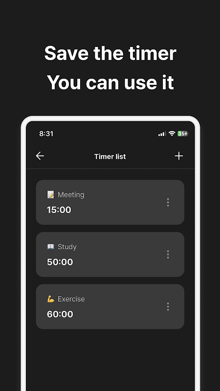 - Sie können den Timer, den Sie häufig verwenden, speichern und ihn jederzeit verwenden, wenn Sie ihn benötigen.