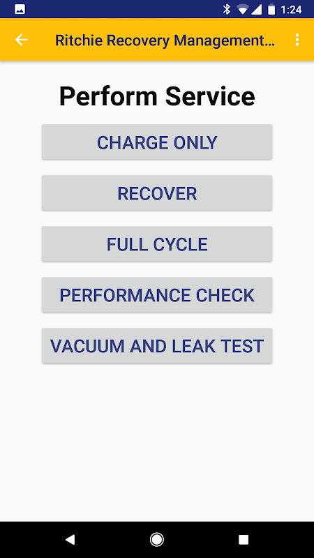 Die gelbe JACKET® RMS ™ App bietet eine drahtlose grafische Benutzeroberfläche mit dem Modell 3784x und 3786x Automotive Kälterückgewinnung und Wiederaufladung Geräten (Hardware Kauf erforderlich).