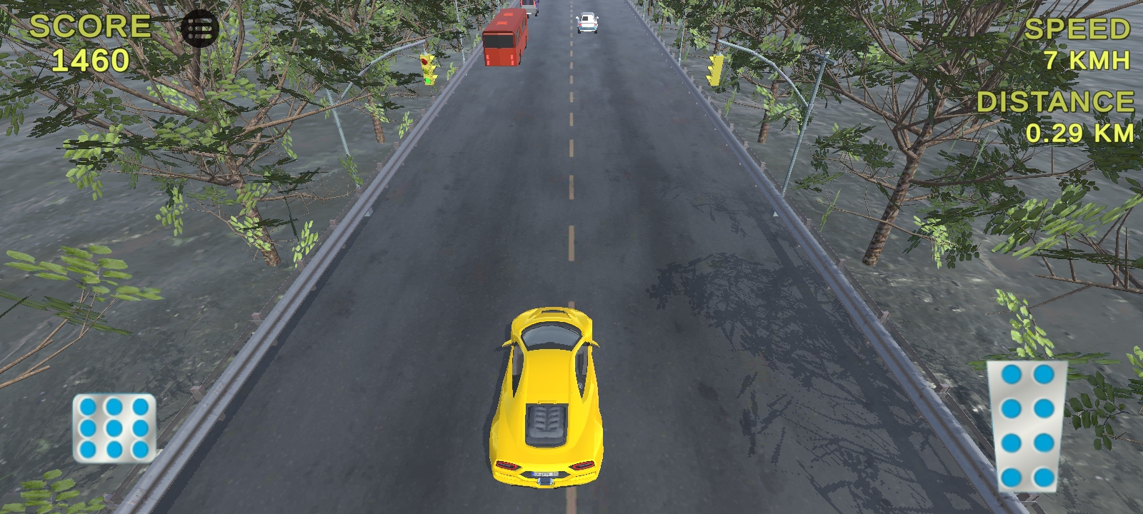 Du kannst das Auto fahren lassen, indem du die Play-Taste drückst und das Auto beschleunigen, indem du die Beschleunigungstaste drückst. Wenn du dein Auto mit einem anderen Verkehrsauto rammst, ist das Spiel vorbei. Nachdem das Spiel vorbei ist, wird deine Punktzahl auf dem Bildschirm angezeigt.