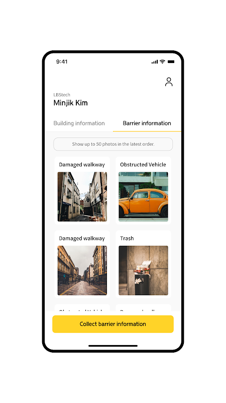 Wir sammeln Informationen, die für Menschen mit Behinderungen gefährlich sein können, wie z. B. steile Bereiche, die für Rollstühle nicht zugänglich sind, illegales Parken auf Gehwegen, Tribünen und Stehschildern.
