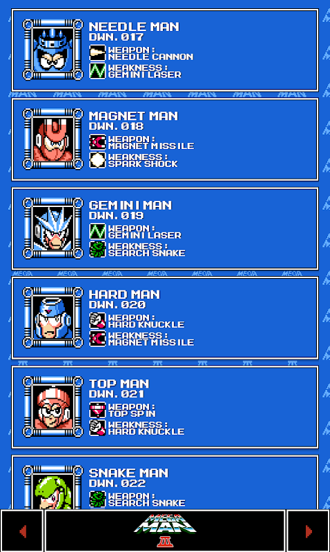 - Fixed weakness formatting for Cut Man (Mega Man 8) when in landscape mode.