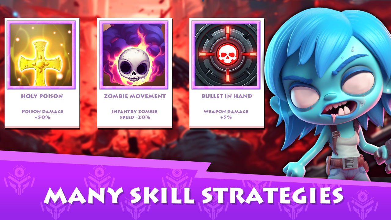Das Ziel besteht darin, Wellen ankommender Zombies abzuwehren, die in unterschiedlichen Formen, Größen und Stärken auftreten.