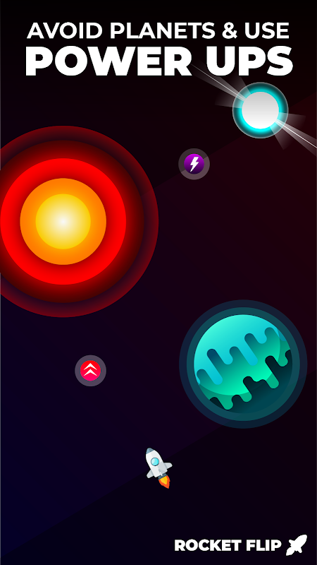 Die Rakete folgt einem Rythmus, mit dem Sie sich dreht. Tippe immer dann, wenn die Rakete sich in die Richtung bewegen soll, in die Sie gerichtet ist.
