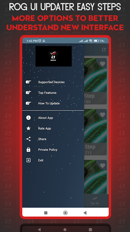 You can easily update ROG UI version and upgrade apps. Fully equipped ROG UI upgrade app for Asus users.