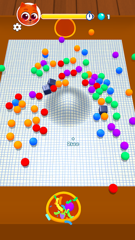Kontrolliere die Katze, um alle Bälle wegzuräumen.