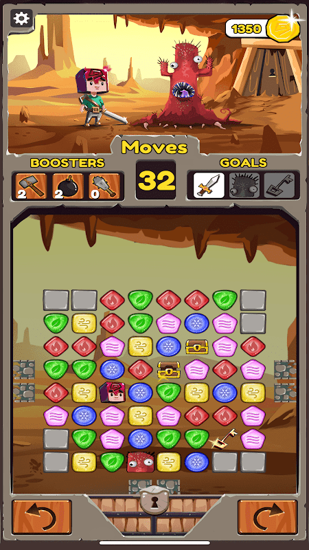 Match, connect to make your way. Swap with a key or with a sword to clear your path to the open door of the dungeon. You can even turn the whole board upside down to escape from the dungeon.