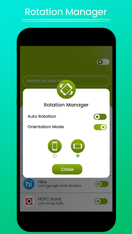 2. App shows different Rotation mode, Landscape, Portrait, Auto. Choose the mode for the app you selected.
