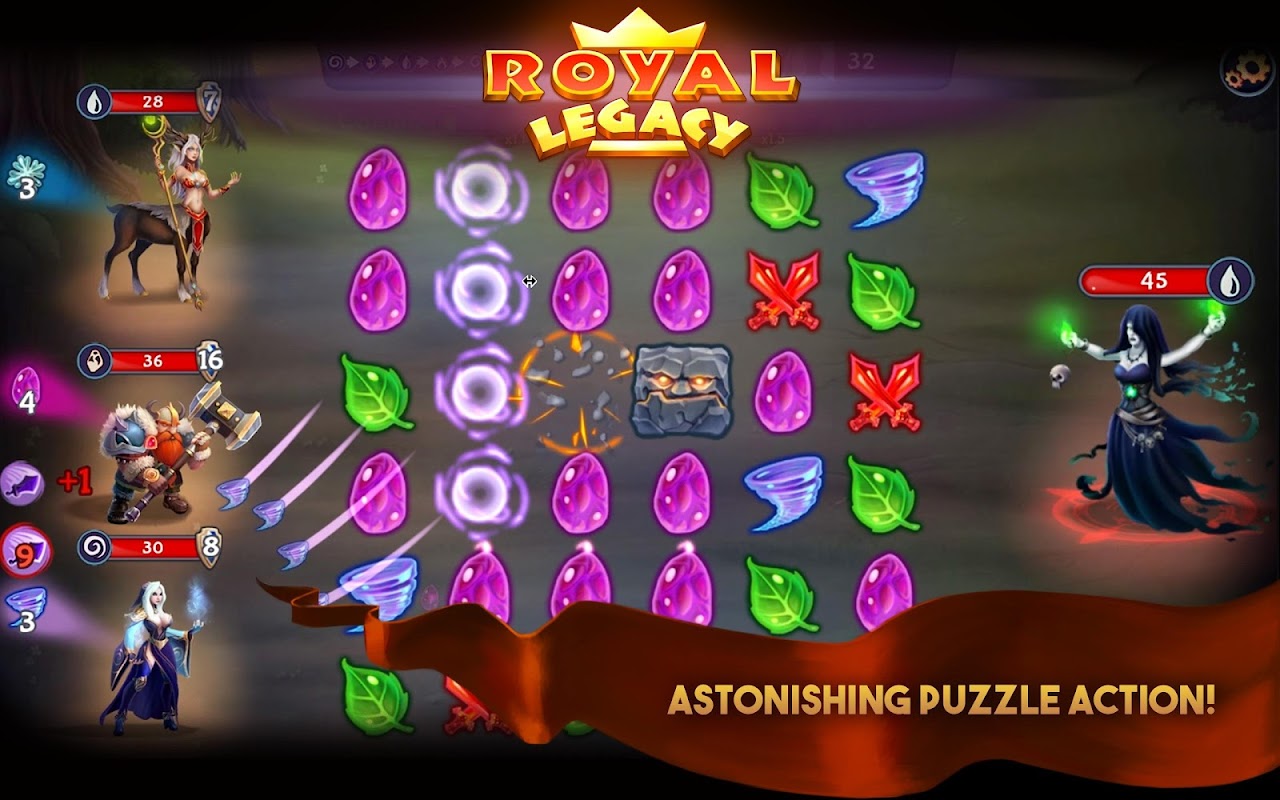 Königliche Legacy ist ein Free-to-Play-Match-3-Puzzle-Spiel mit RPG-Features. Gameplay mischt RPG-Gameplay mit Strategie-Elementen. Das Reich Kadia ist in Gefahr und Monster Horden das Land erobert haben. Ein junger Prinz ist der Held, der das Reich von dieser bösen Macht befreien kann. Der Spieler kann zwischen verschiedenen Helden wechseln, jede mit einzigartigen Fähigkeiten.