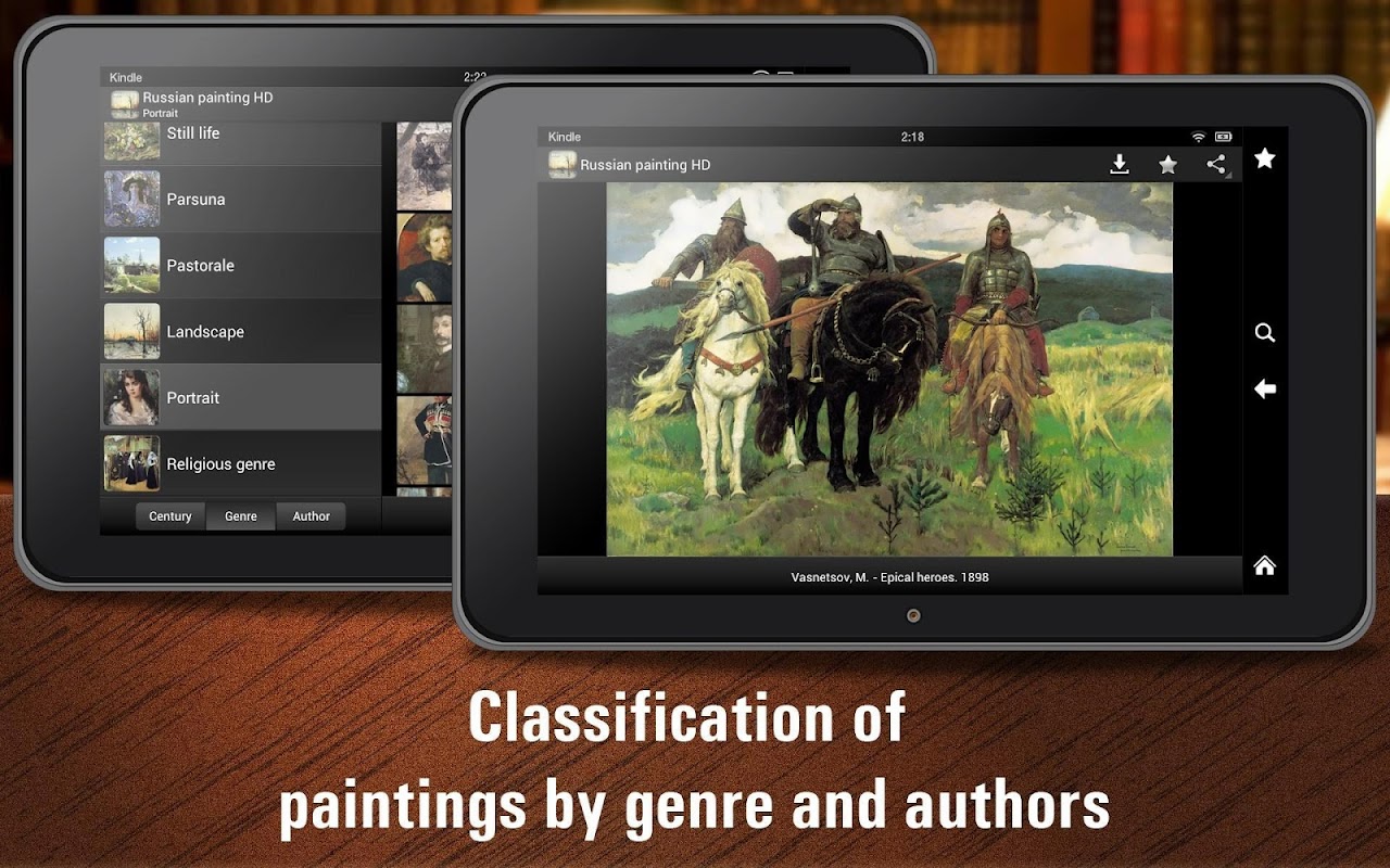 Die Anwendung enthält 1500 Werke von 250 größten russischen Maler - Aivazovsky, Schischkin, Savrasov, Repin, Levitan, Vrubel, Roerich, Surikov, Vasiliev und andere berühmte Maler.