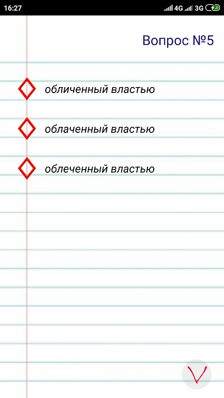Die Anwendung ist ein Test der Rechtschreibung und Zeichensetzung der russischen Sprache zu verschiedenen Themen. Sie können sowohl das ausgewählte Thema als auch alle gleichzeitig testen, indem Sie einen allgemeinen Test durchführen. Nachdem Sie den Test bestanden haben, können Sie Ihre Fehler sehen und die relevanten Regeln der russischen Sprache studieren.