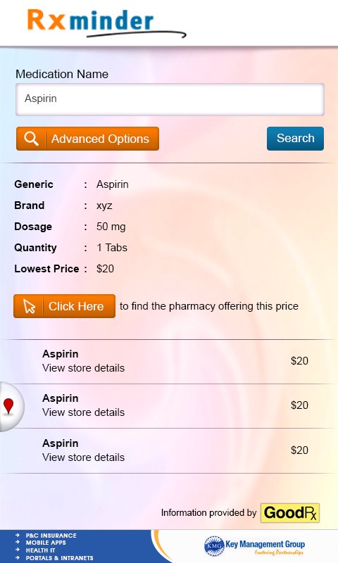 RxMinder is a comprehensive mobile solution for managing your drug prescriptions and setting alerts to keep you on track with the administration schedule. Additionally, this application uses advanced GoodRx APIs for locating vendors offering the prescribed medicines at lowest price in their locality along with any advocated procedure costs.