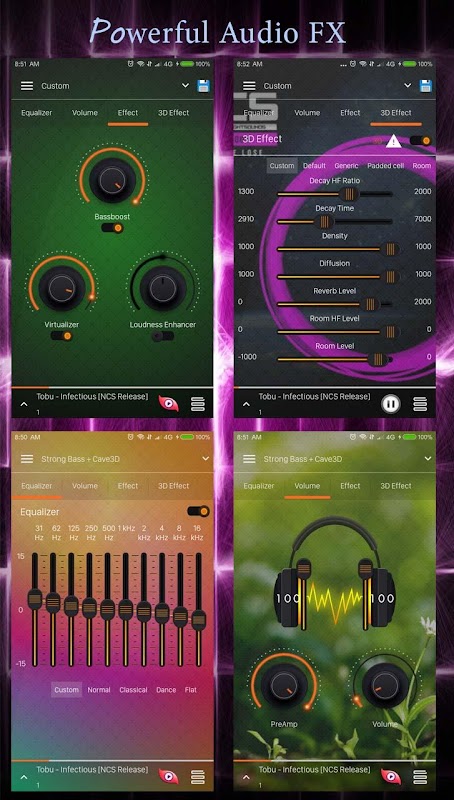 ✪Powerful effect with : Bass Booster (up to 1000 strength), Virtualizer, Loudness enhancer.
