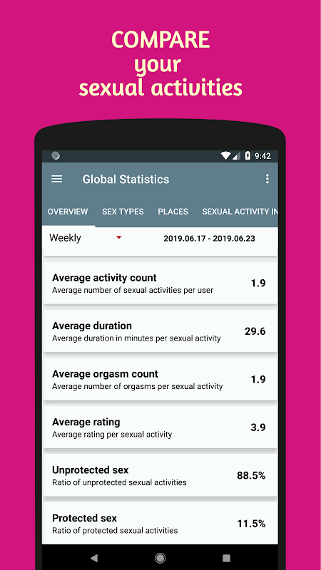 - Sie können Ihre Sexualstatistiken mit dem Rest der Welt durch anonyme globale Sexualstatistiken vergleichen!