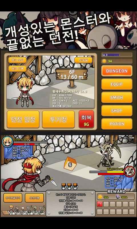 층을 진행할 수록 더욱 다양하고 강한 몬스터들이 등장합니다.