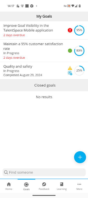 * Melden Sie sich über die App bei TalentSpace an, ohne Anmeldeinformationen einzugeben, um das Lernen zu starten, Ziele anzuzeigen und zu bearbeiten, Aufgaben anzuzeigen usw.