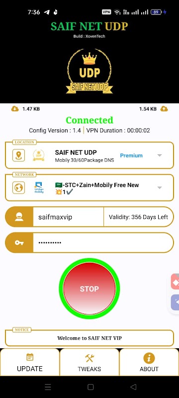 SAIF NET UDP ist ein schnelles und sicheres Proxyserver-VPN für Android