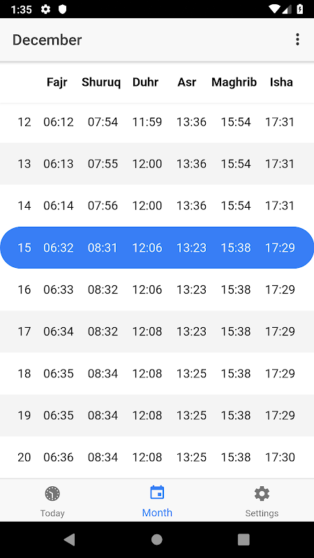 Salatappen - Gebetszeiten gemäß der jährlichen Tabelle.