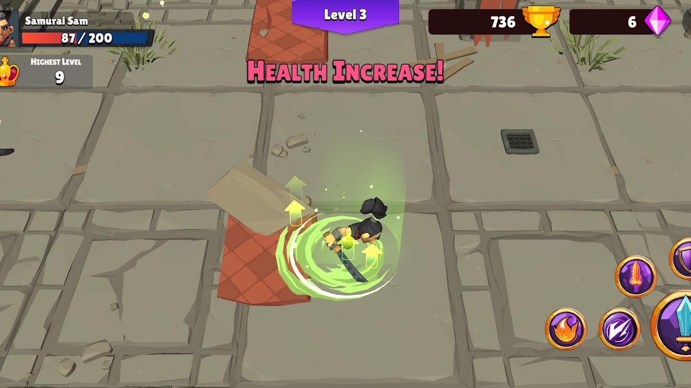 Kämpfe dich durch Horden von Skeletten, erfülle Kartenziele, schalte neue Herausforderungen frei und baue einen Samurai auf, der mit permanenten Upgrades immer stärker wird.