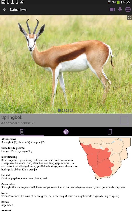 Diese App ist sehr gut für Anfänger als auch für die Besucher der Region. Dazu gehören schöne Bilder, Videos diereroepe, Karten und einfach, den Text zum südlichen Afrika wild lebende Tiere (einschließlich der Erhaltungszustand der Arten) zu lesen.