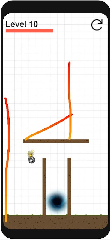 Verwende die Linien, um die Bombe in die gewünschte Richtung zu bewegen.