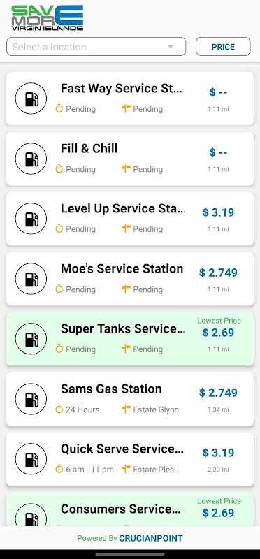 Save More Virgin Islands wurde entwickelt, um den Jungferninseln Woche für Woche die niedrigsten Benzinpreise mitzuteilen. Finden Sie die besten Benzinpreise auf allen drei Inseln, sortiert nach Preis oder Entfernung.