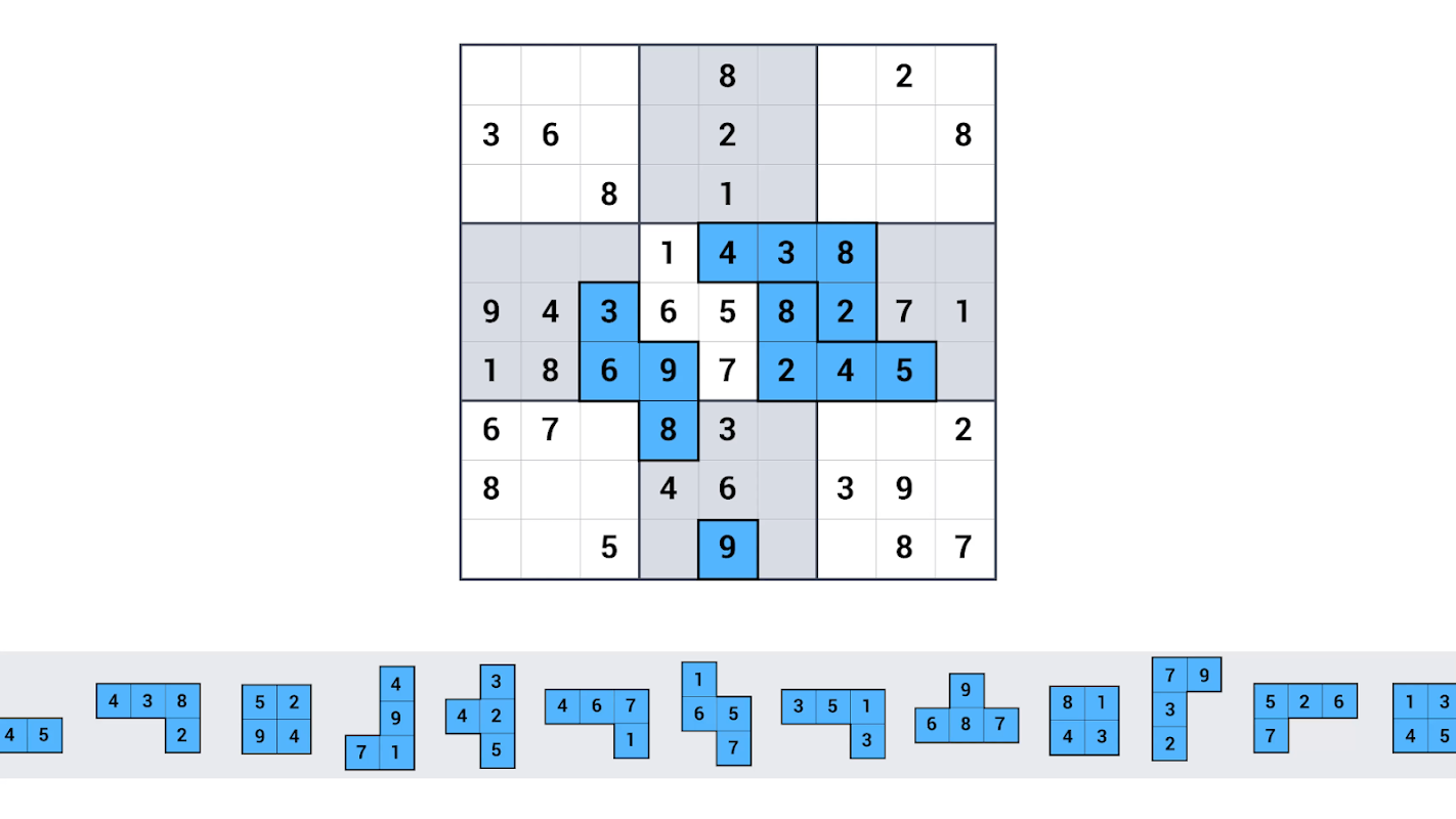 Block-Puzzlespiel: Sudoku trifft Jigsaw. Löse Rätsel, trainiere dein Gehirn und deine Logik.