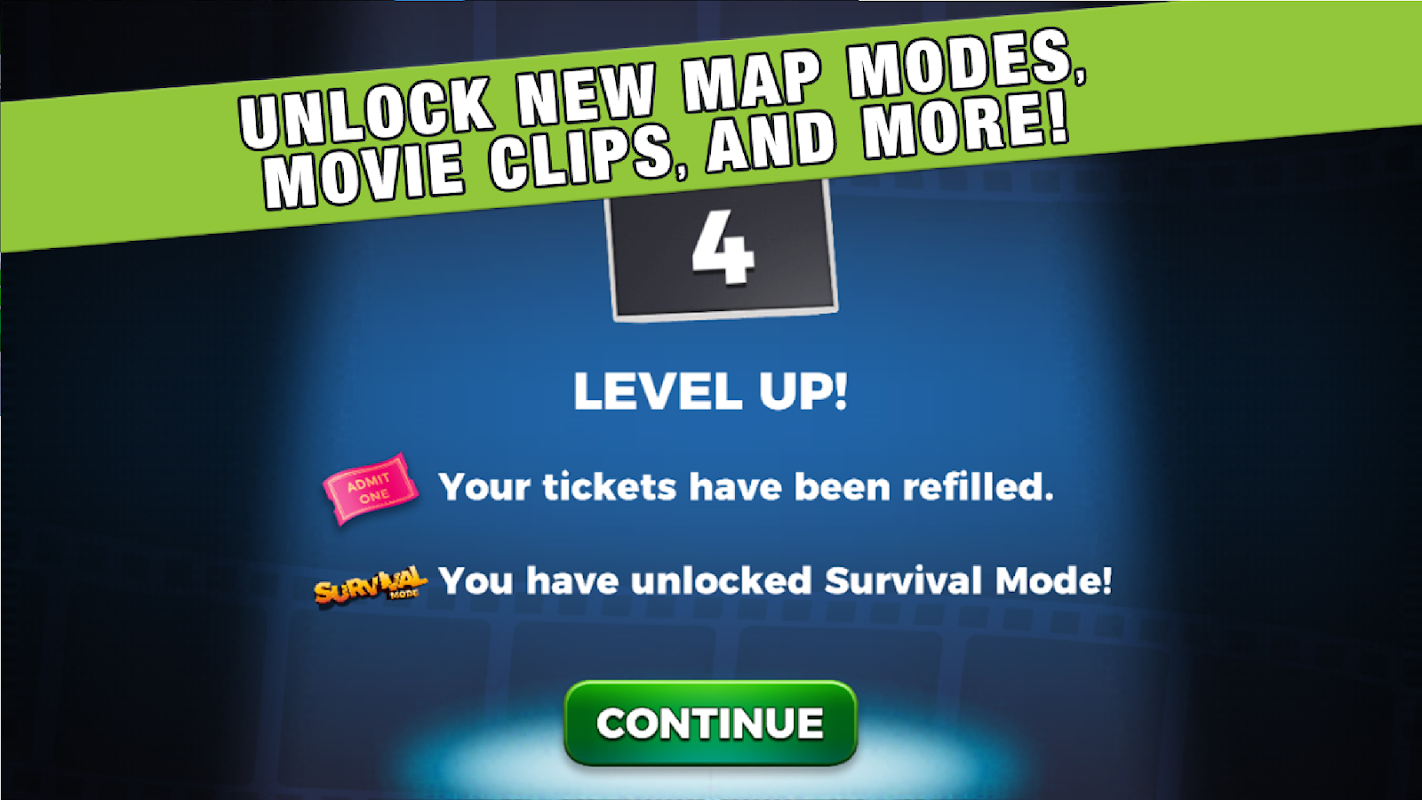 Un-Scramble your favorite movie scenes in this Blockbuster Puzzler! Use boosts like Freeze Time, Swap and Stop Video for help along the way. Complete cinematic puzzles with the highest difficulty to earn virtual rewards like reels, gems, tickets, and boosts! Progress through the Studio Tour and rise through the ranks of the Hollywood elite as you gain stars. Play endless puzzles in Survival mode, try to beat the clock or solve in the least number of moves. No matter how you play Scene Slam, you'll be seeing stars!