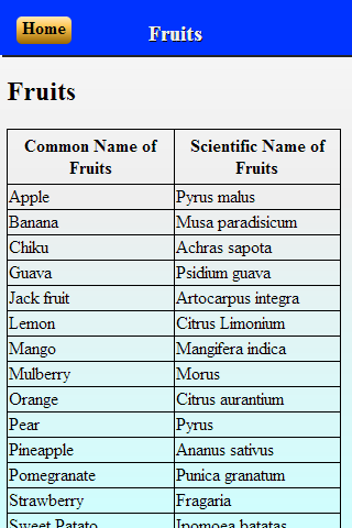 This application will be useful for all to know the Scientific names of Animals, Plants, Flowers, Fruits, Birds, Vegetables.