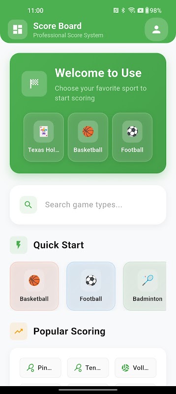 Score Board – Der multifunktionale Scoring Assistant ist ein professionelles, multiszenarienfähiges Scoring-Tool, das sich für verschiedene Sportveranstaltungen und Party-Brettspiele eignet. Egal, ob Sie Familienunterhaltung organisieren oder einen formellen Wettbewerb veranstalten, diese App bietet Ihnen ein bequemes, effizientes und intelligentes Scoring-Erlebnis.