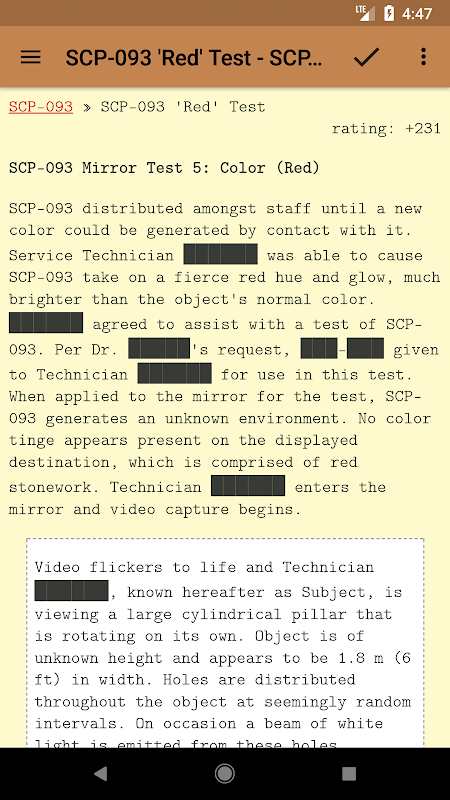 Lesen Sie mit dieser immersiven Reader-App über anomale Gegenstände, Wesen und Orte im SCP-Wiki. Unterstützt SCP Serie 9!