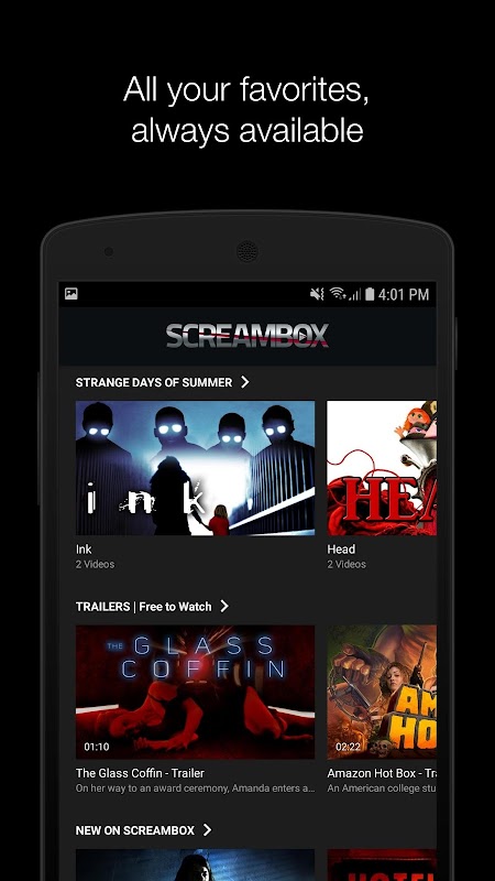 Join the biggest, bloodiest, baddest group of fright fans on the newly updated Screambox app. This version offers killer new features and fresh, creepy content so you can scream unlimited movies and shows -- anytime, anywhere. Watch every kind of horror, from Supernatural, Psychological, and Slasher, to Classics, Monsters, Zombies, Extreme banned titles, and much more! No commitments, cancel anytime.
