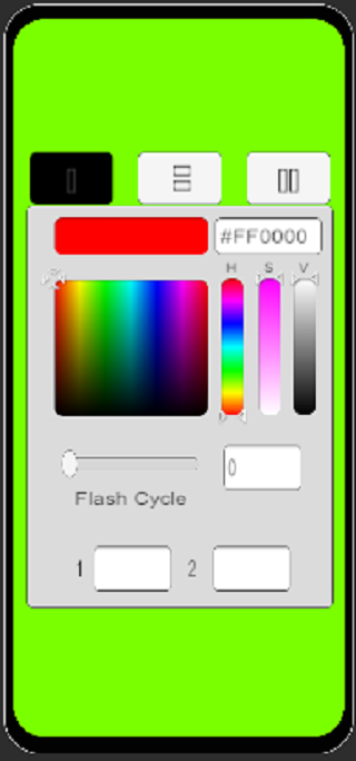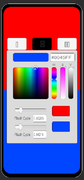 - Durch Tippen auf das Symbol oben links können Sie zusätzlich zu verschiedenen Blinkmodi (Einzelbildschirm, Blitz oben/unten und Blitz seitlich/seitlich) eine personalisierte Farbe auswählen.