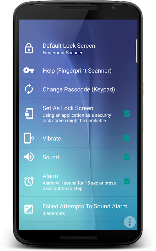 - Klingt Alarm aus, wenn der Zugriff verweigert mehrere Male (kann in den Einstellungen Bildschirm eingestellt werden)