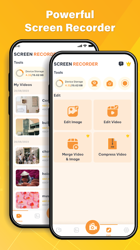 Starten Sie die Videoaufzeichnungs-App auf Ihrem Gerät. Konfigurieren Sie Ihre Videoaufzeichnungseinstellungen entsprechend Ihren Anforderungen. Beginnen Sie mit der Aufnahme von Videos mit einem einzigen Klick. Versuchen Sie, Ihr Video mit mehreren Bearbeitungstools zu verbessern. Und schließlich teilen Sie sie über mehrere soziale Medien mit der Welt.