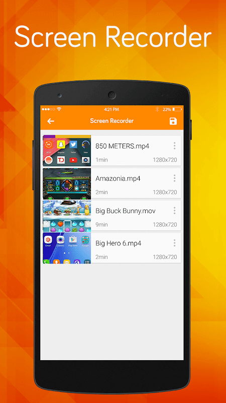 A popular screen recorder and video editor for Android.Capture HD screen videos for games, apps ;take screenshots.screen record, screen recorder, video capture, snap save, trim video, screencast.Game Screen Recorder is a premium recorder app for game and screen.Record your screen.Screen recorder with facecam, audio and editor. Take a screenshot with 1-touch.The best screen recorder with no time limit and tons of features for FREE!Record my screen for screen record with screen capture and screen recording app.Screen recording app for grabador de pantalla Screen recorder for snap-chat game screen recorder record screen video face cam screen recorder phone screen recorder screen recorder with face cam video screen capture grabar pantalla screen recorder for i-pad recording app.