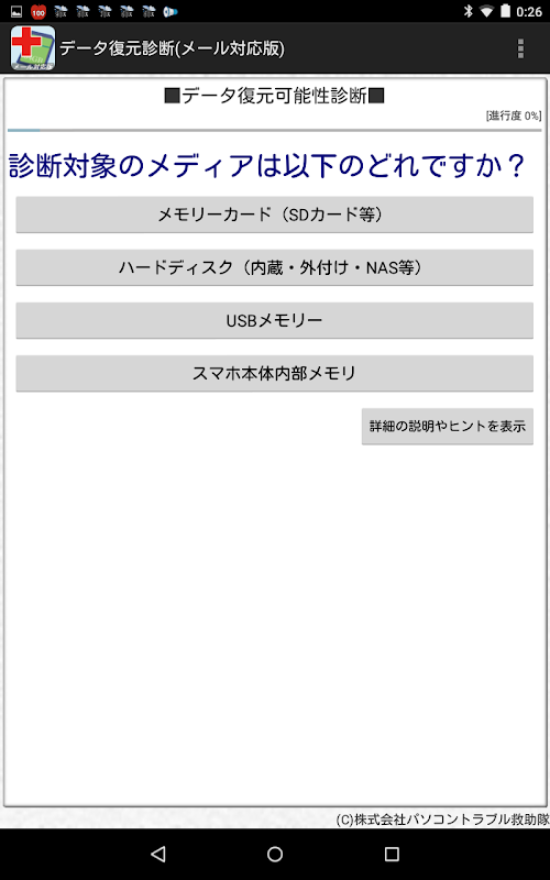 そのため、アクシデントの代表的なチェックポイントを集約し、ある程度の自己診断によって復元の可能性があるのかどうかの一つの目安として頂けるようにアプリを作成致しました。