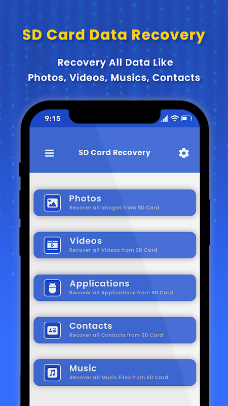 Speicherkarten-Datenwiederherstellung: SD-Karten-Datenwiederherstellung, Foto, Video ist eine sehr leistungsstarke Anwendung, die alle auf Ihrem Telefon installierten Anwendungen und einige andere Dinge sichern oder wiederherstellen kann. Sie können dies mit einer SD-Karten-Datenwiederherstellung tun. Geschwindigkeit Speichern Sie Ihre Arbeit sehr schnell und einfach, Sie drücken nur ein paar Tasten, und es beginnt zu arbeiten.