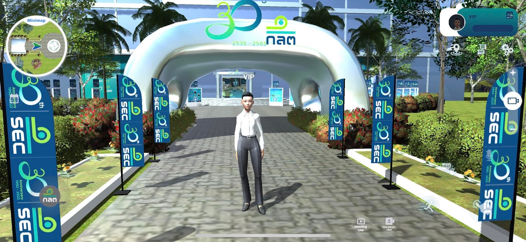Die Kraft der technologischen Innovation in der Kommunikation, die als Kanal für die Ausrichtung von Online-Seminaren des SEC Capital Market Symposium 2022 genutzt werden kann, um die Teilnahme an dem Seminar interessant zu machen. Über SEC Verse können Menschen auf der ganzen Welt miteinander kommunizieren und Aktivitäten unternehmen.Sie können auch einen Charakter (Avatar) nach Ihrem Stil erstellen und Seminare über das System anhören. Live-Streaming oder unterhalten Sie sich zwanglos im Networking-Raum