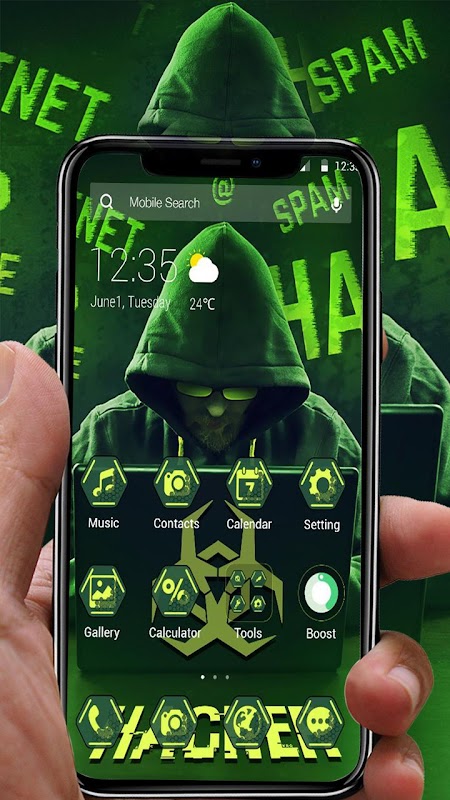 Installieren Sie Secret Hacker APUS Launcher Theme und machen Sie Ihr Handy zu etwas Besonderem.